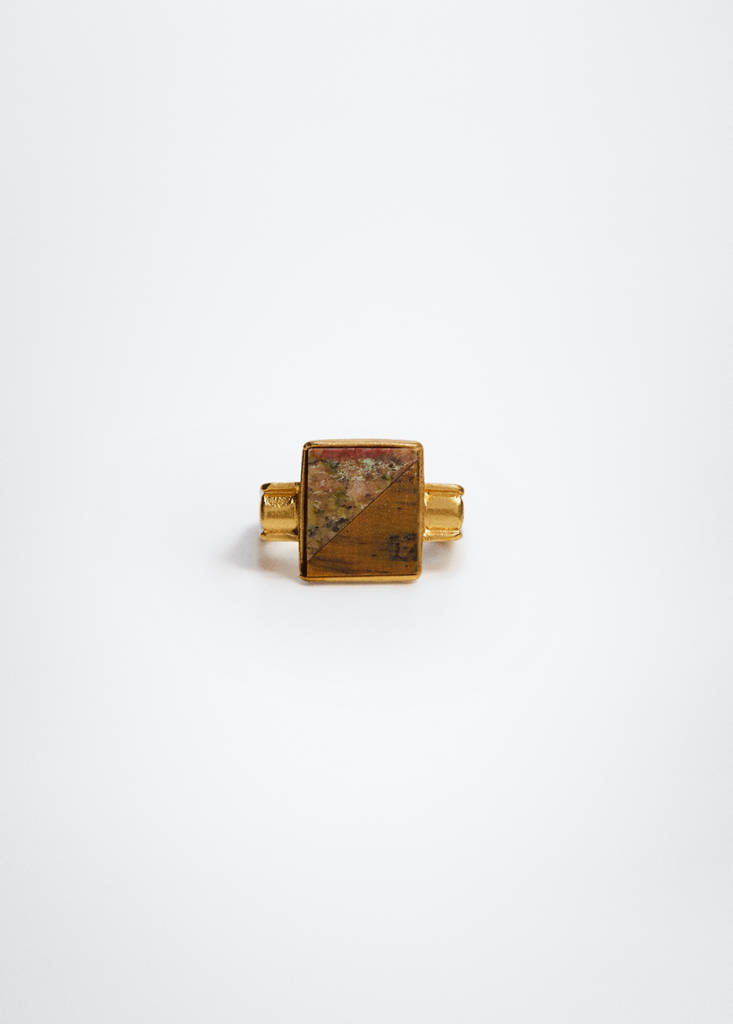Κολεξιόν επιχρυσωμένη 24 καρατίων. Μίξη ορείχαλκου. Διακοσμητική πέτρα. Τετράγωνος σχεδιασμός