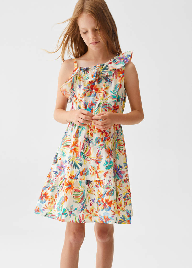 100% bavlna.. Στάμπες λουλούδια. Κοντό σχέδιο. Σχέδιο ασύμμετρο. Σχέδιο βολάν. Λεπτές ράντες. Τιράντες με βολάν. Ασύμμετρος λαιμός