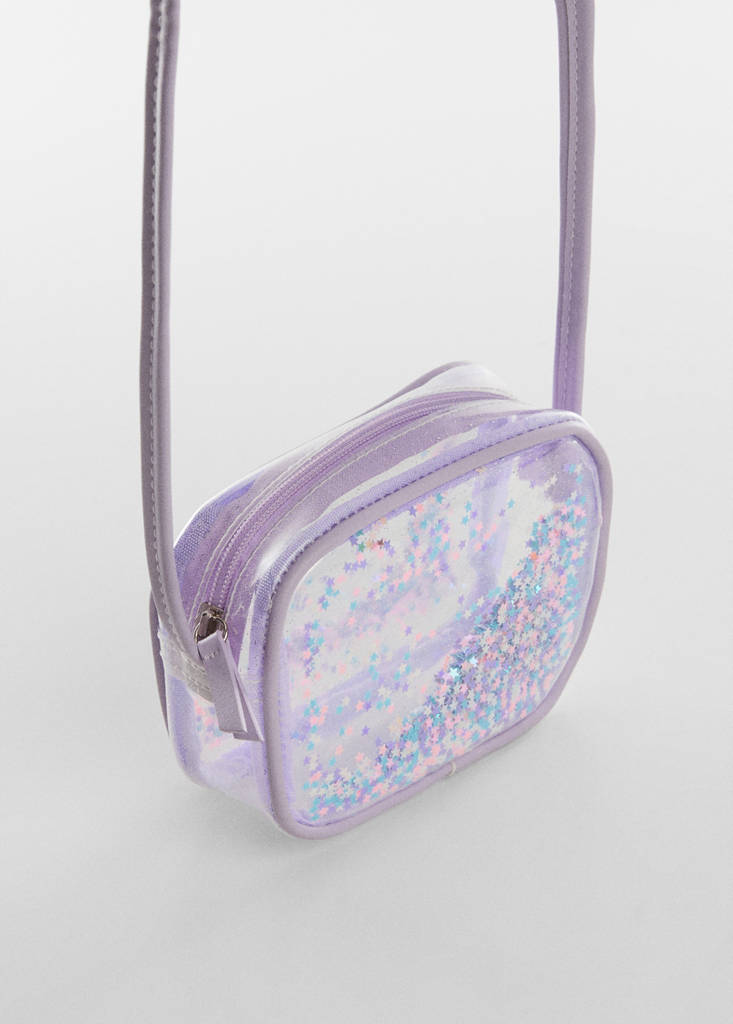 Transparent design. Small size. Long strap. Stars details. Zip fastening
