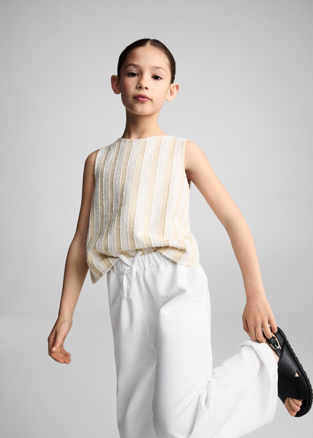 Cotton and linen blend fabric. Straight design. Long design. Wide-leg design. Elasticated waistband. Drawstring closure. Two patch pockets at the back.