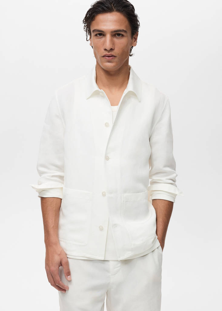 Selection Collection. Linen and lyocell blend fabric. Straight-fit. Shirt collar. Front closure with buttons. Two patch pockets at the front. Buttoned cuffs. Straight hem