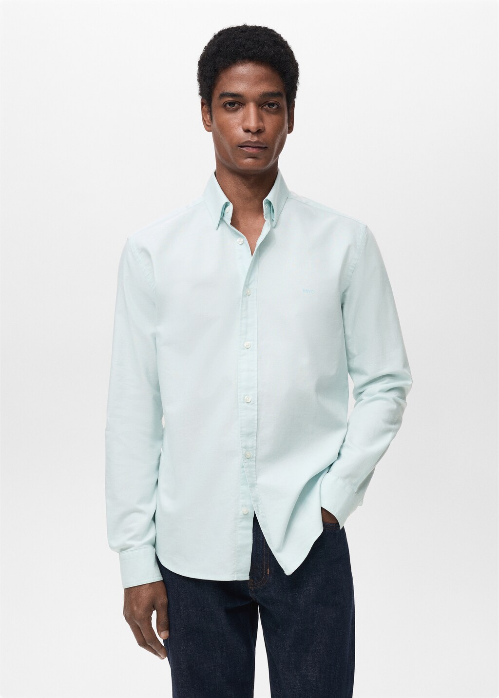 100% cotton Oxford fabric. Regular fit. Buttoned collar. Mango logo embroidered on the chest. Long sleeves with buttoned cuffs. Rounded base.
