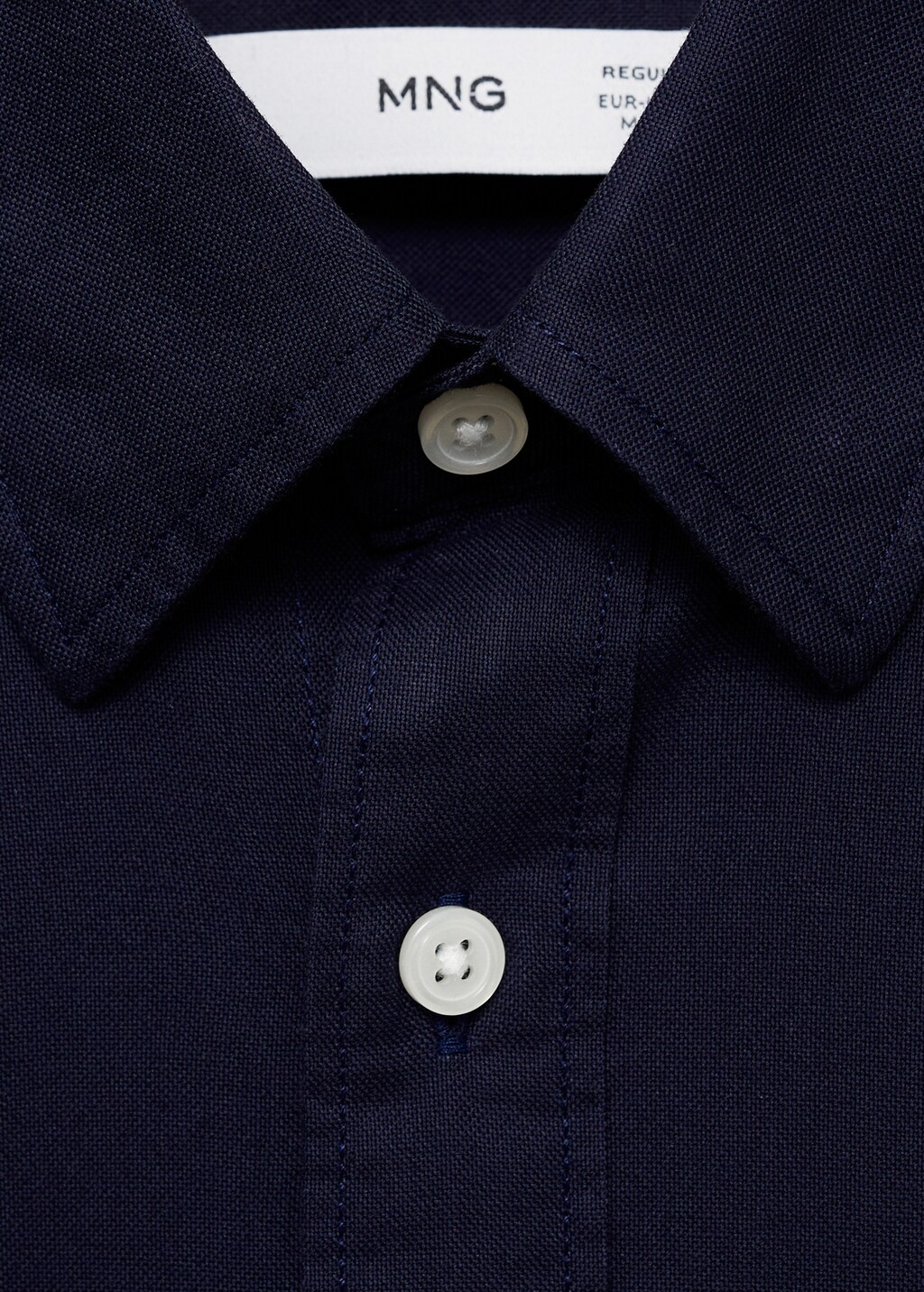 100% cotton Oxford shirt with logoPrice historyInitial price struck through [39.99 € ]39.99 €Current price [30.99 € ]30.99 €-23%Select a colourDark NavySelect your sizeXSNot available. I want it!SNot available. I want it!MLast few items!LLast few items!XLLast few items!XXLLast few items!Size guideAddDescription100% cotton Oxford fabric. Regular fit. Buttoned collar. Mango logo embroidered on the chest. Long sleeves with buttoned cuffs. Rounded base.See detailsShare