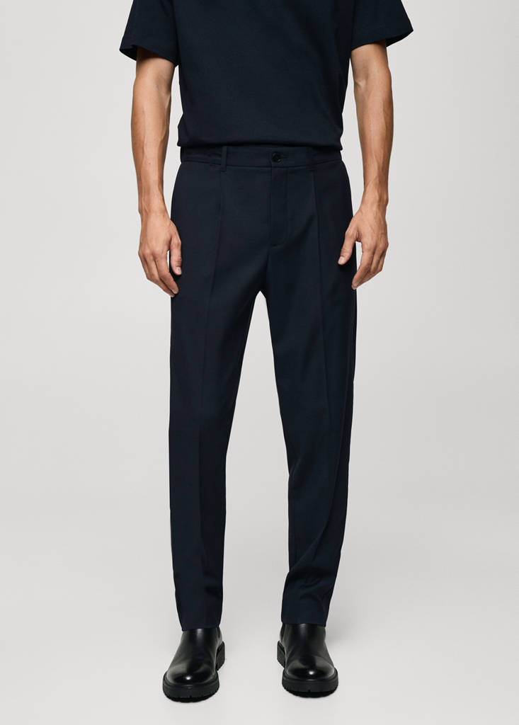 ESSENTIALS: Made to last. Set available as total look. Slim fit. Front pleat detail. Belt loops. Straight hem. Pressed crease detail at the front and back. Two welt pockets with button at the back. Front button closure