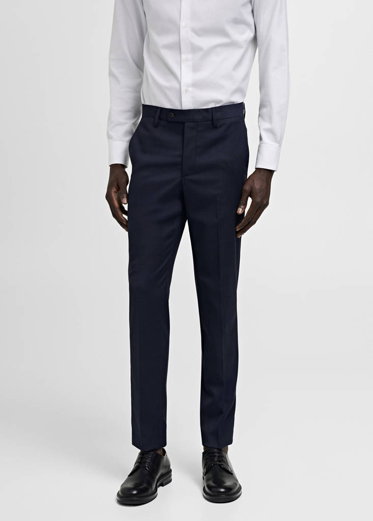 Slim fit. Comfort Stretch: Stretch fabric for added comfort. Mid-rise. Belt loops. Concealed button, hook and zip fastening. Two side pockets. Concealed coin pocket at hip level. Two welt pockets with button at the back. Tailoring collection. Pressed crease detail at the front and back. Comfort: Horizontal and vertical stretch fabric for added comfort