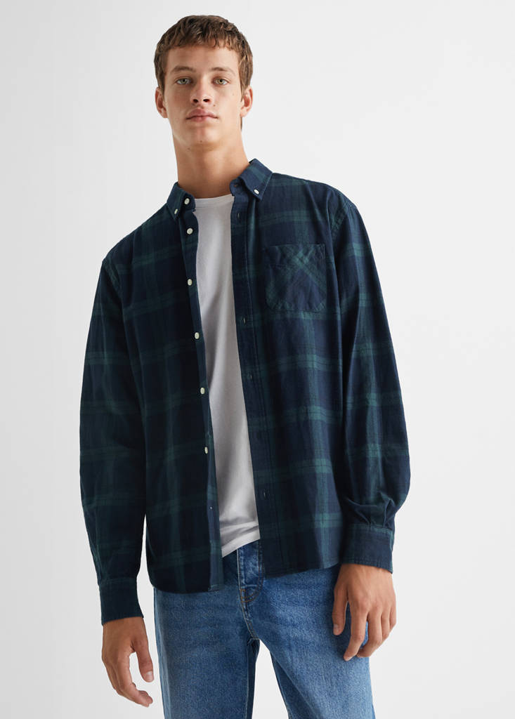 Checked print. Regular fit. Chest pocket. Buttoned cuffs. Shirt collar. Long sleeves. Front closure. Button up