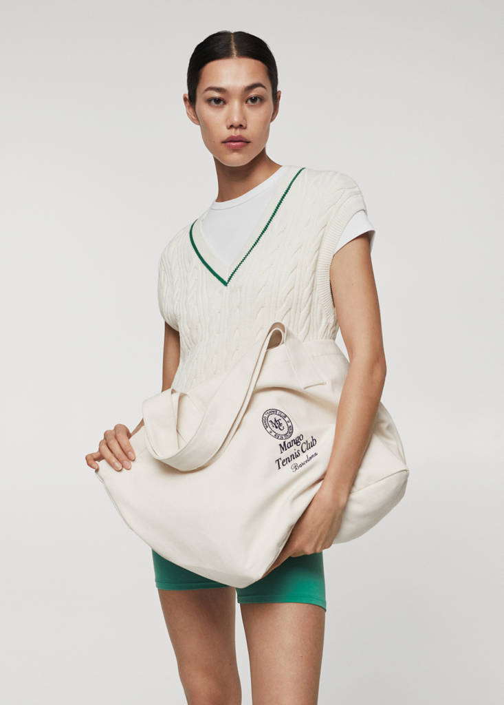 Embroidered tote bagPrice historyInitial price struck through [29.99 € ]29.99 €Current price [23.99 € ]23.99 €-20%Select a colourEcruSelect your sizeOne sizeNot available. I want it!Notify me100% Cotton. Embroidered logo. Two short handles. Unclosed. Mango Tennis Club Collection60.0x34.0x26.0 cm (Length x Height x Width)Details, composition and careStore availability