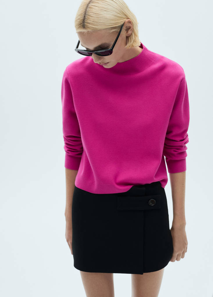 Knitted sweater with perkins neckPrice historyInitial price struck through [29.99 € ]29.99 €Second price struck through [23.99 € ]23.99 €Current price [18.99 € ]18.99 €-37%Select a colourFuchsiaSelect your sizeXXSNot available. I want it!XSNot available. I want it!SNot available. I want it!MNot available. I want it!LNot available. I want it!XLNot available. I want it!XXLNot available. I want it!DimensionsNotify meHigh collar. Fine knit fabric. Straight design. Long sleeves. Available Plus. No FasteningDetails, composition and careStore availability