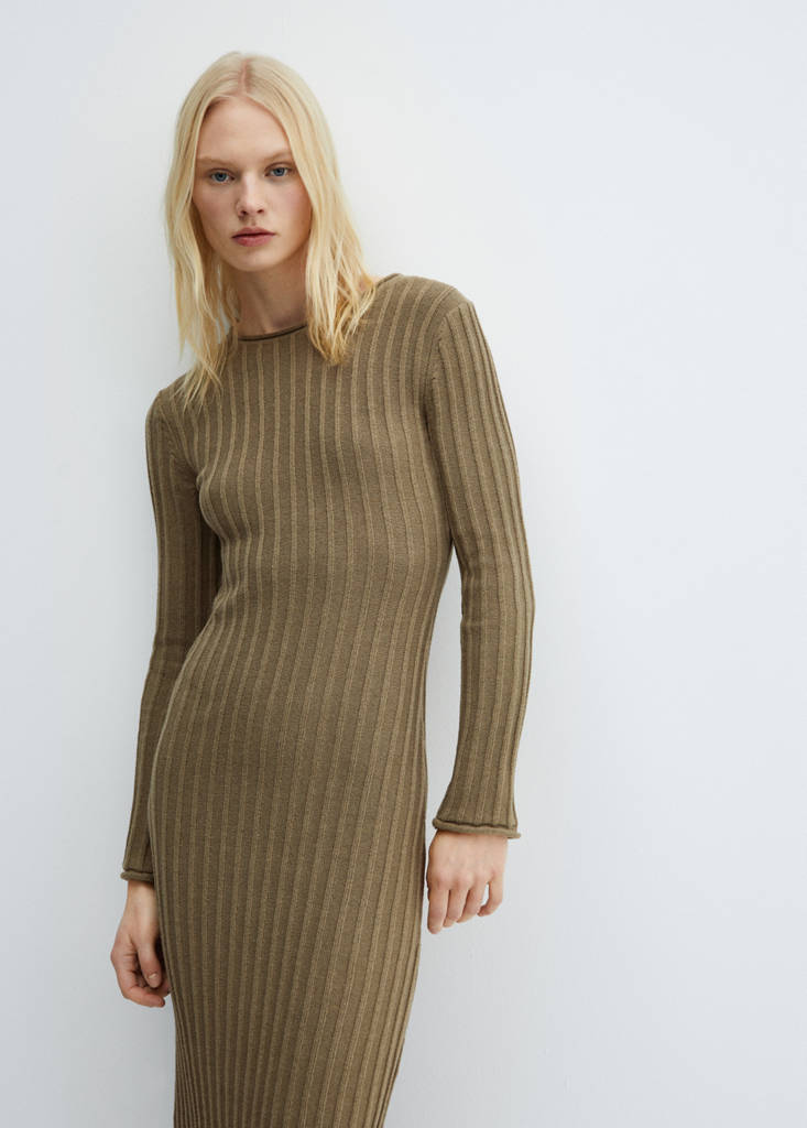 Ribbed knit dressPrice historyInitial price struck through [45.99 € ]45.99 €Second price struck through [31.99 € ]31.99 €Current price [7.99 € ]7.99 €-83%Select a colourKhakiThe model is wearing size S and is 179cm tall.Select your sizeXXSNot available. I want it!XSNot available. I want it!SMLast few items!LNot available. I want it!XLNot available. I want it!XXLNot available. I want it!DimensionsAddCotton blend fabric. Ribbed knit fabric. Midpoint. Midi design. Straight design. Round neck. Long sleeves. No FasteningDetails, composition and careStore availability