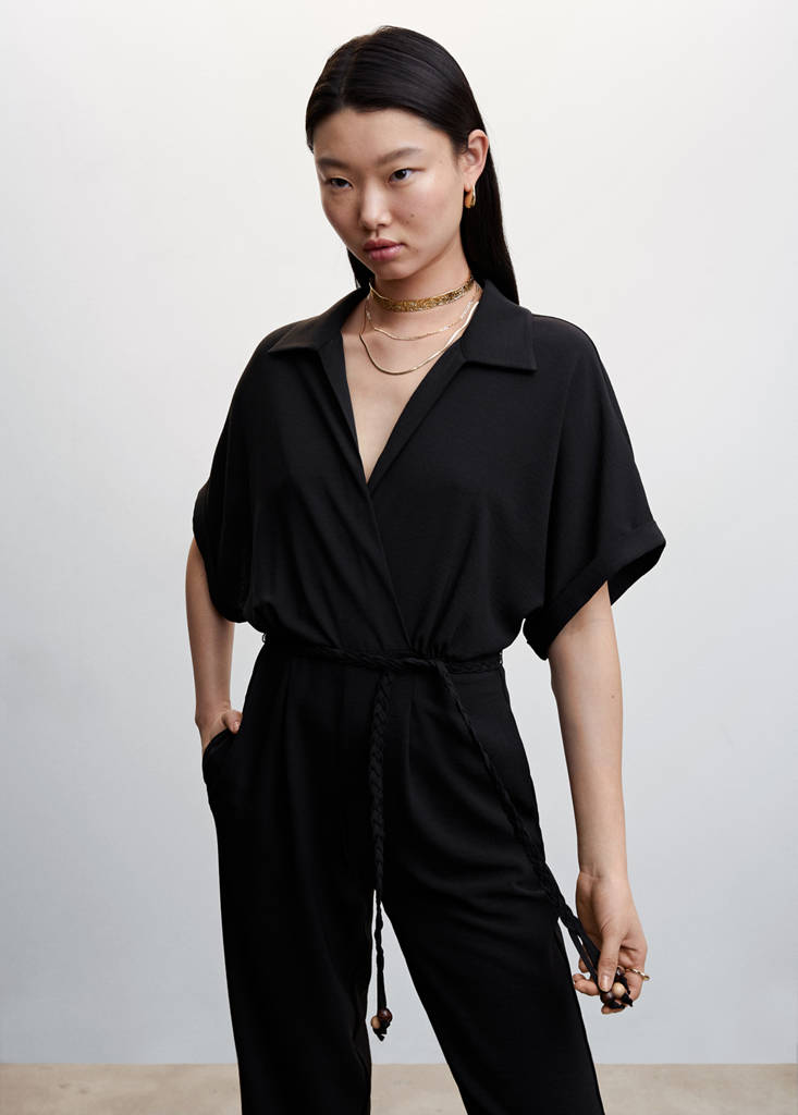 Lace shirt jumpsuitPrice historyInitial price struck through [55.99 € ]55.99 €Current price [38.99 € ]38.99 €-30%Select a colourBlackThe model is wearing size S and is 178cm tall.Select your sizeXXSNot available. I want it!XSNot available. I want it!SNot available. I want it!MNot available. I want it!LNot available. I want it!XLNot available. I want it!XXLNot available. I want it!DimensionsNotify meFlowy fabric. Straight design. Long design. Shirt-style collar. Short sleeve with turnover. Elasticated waist. Two side pockets. Unclosed. Decorative drawstring. Plus Size AvailableDetails, composition and careStore availability