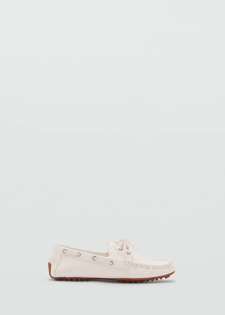 Leather boat shoes with lacesPrice historyInitial price struck through [89.99 € ]89.99 €Second price struck through [70.99 € ]70.99 €Current price [32.99 € ]32.99 €-63%Select a colourWhiteSelect your size36373839Not available. I want it!40Not available. I want it!41Not available. I want it!DimensionsAddGoat skin. Flat. Bovine leather and rubber sole. Leather laces. Inner liningDetails, composition and careStore availability