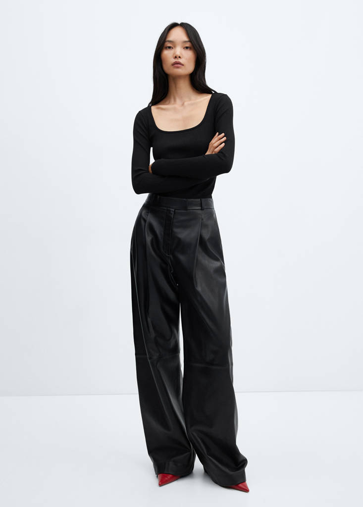 Low-cut ribbed T-shirt