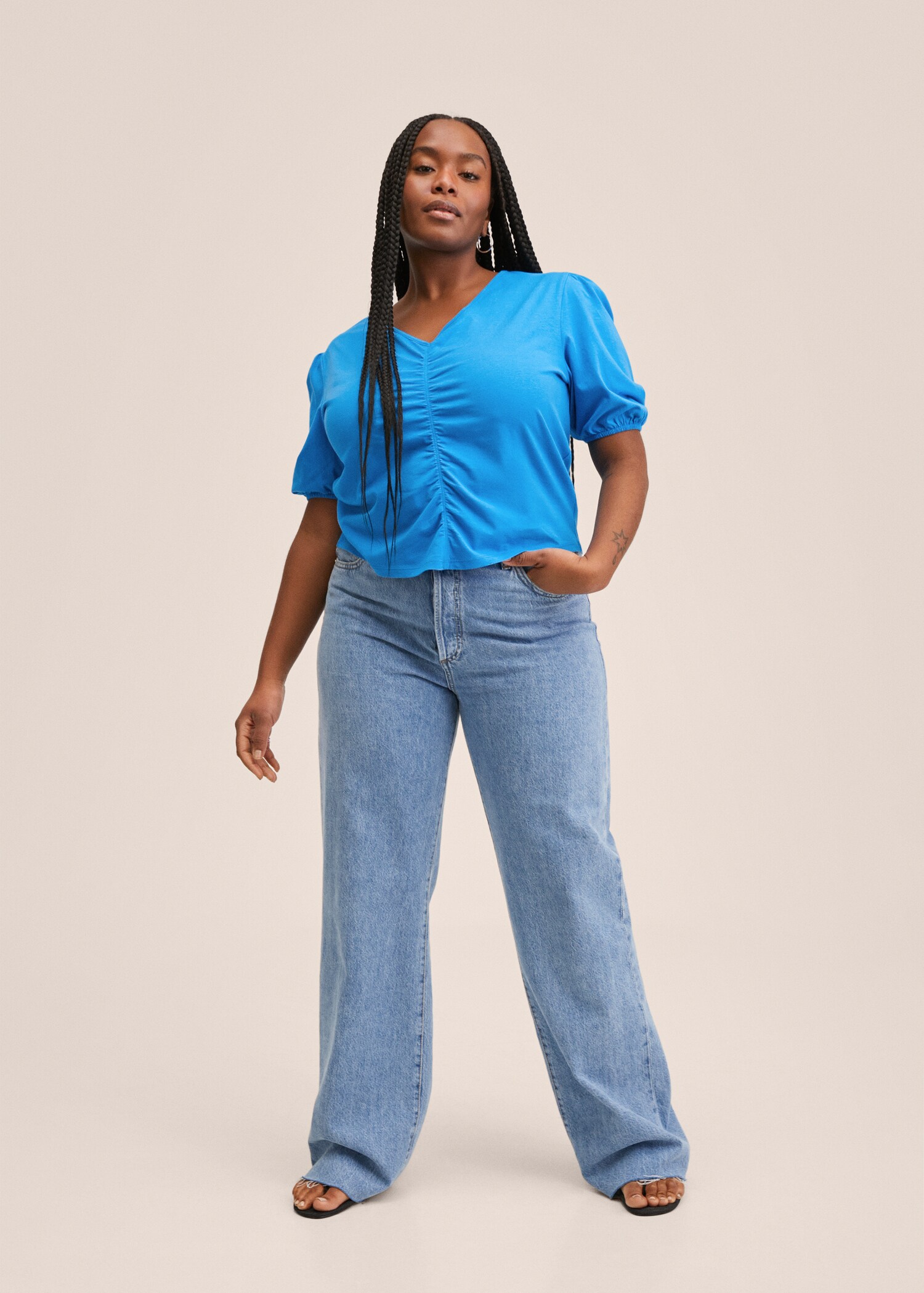 Gathered cotton t-shirtPrice historyInitial price struck through [9.99 € ]9.99 €Current price [6.99 € ]6.99 €-30%Select a colourBlueSelect your sizeXXSNot available. I want it!XSNot available. I want it!SNot available. I want it!MNot available. I want it!LNot available. I want it!XLNot available. I want it!XXLNot available. I want it!1XLNot available. I want it!2XLNot available. I want it!3XLNot available. I want it!4XLNot available. I want it!Size guideNotify meDescription100% Cotton. Straight design. V-neck. Short sleeve with elastic cuffs. Gathered detail on the front. Plus Size Available.See detailsSize guideShare