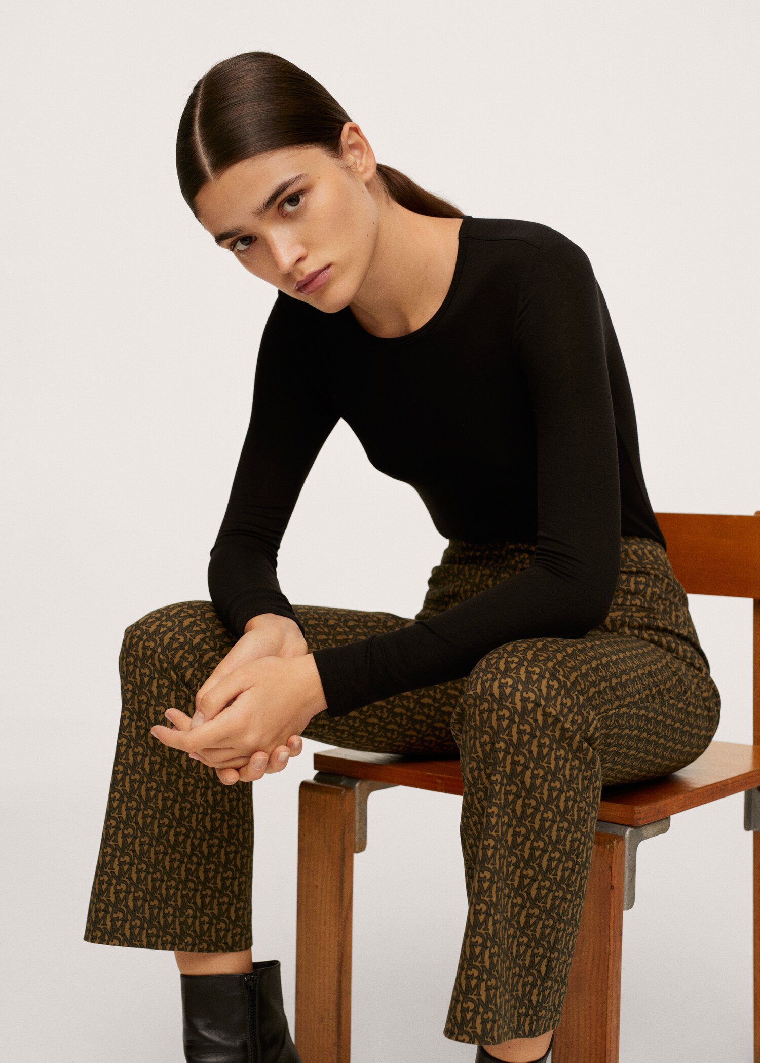 Flare crop trousersPrice historyInitial price struck through [25.99 € ]25.99 €Current price [17.99 € ]17.99 €-31%Select a colourBrownSelect your size32Not available. I want it!34Not available. I want it!36Not available. I want it!38Not available. I want it!40Not available. I want it!42Not available. I want it!44Not available. I want it!46Not available. I want it!Size guideNotify meDescriptionFabric with cotton. Elastic. Available in plain and patterned. Logo print. Cropped design. Flare design. High waist. Two welt pockets on the front. Zip and hook fastening.See detailsSize guideShare