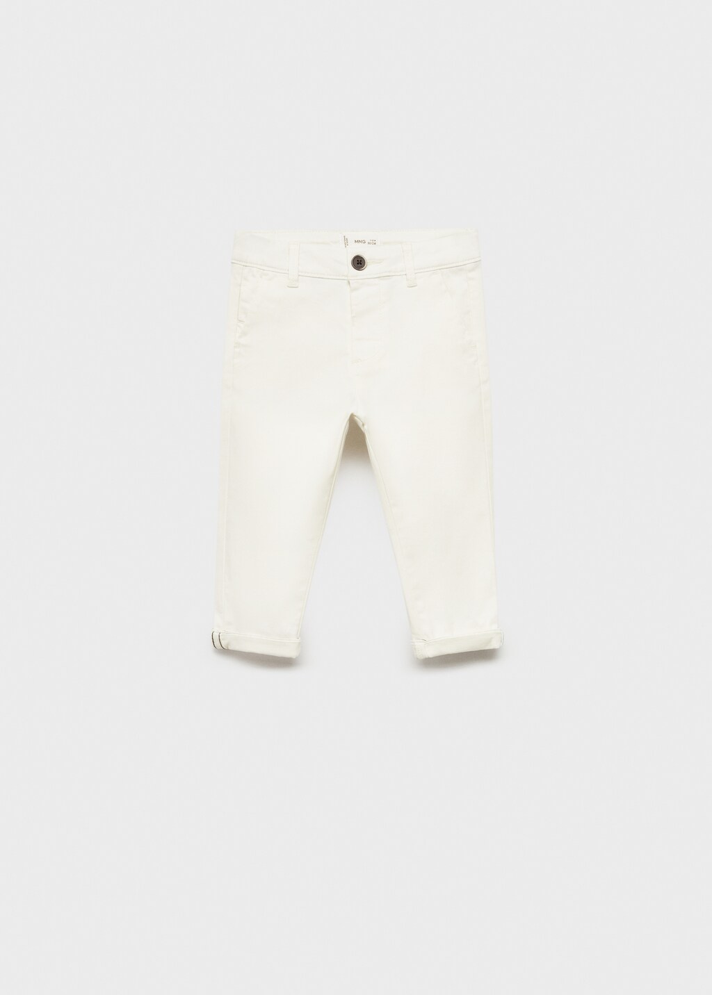 Back to school. Cotton fabric. Straight Design. Two side pockets. Two piped pockets at back. Zip and button fastening. Fabric with cotton. Long design. Two pockets with flaps. Mid-rise. Button closure.