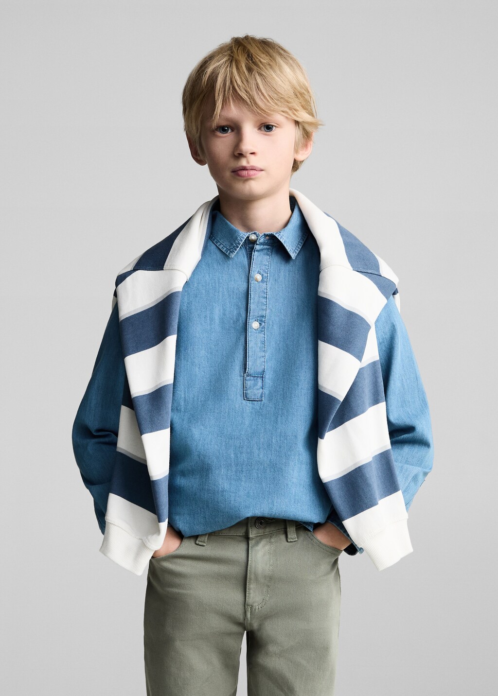 Back to school collection. Fabric with cotton. Straight Design. Five pockets. Zip and button fastening. Standard design. Long design. Loops on the waist. Mid-rise. Regular fit.