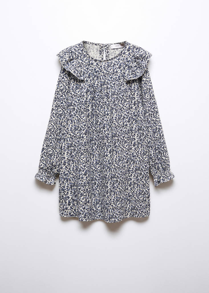 100% Cotton, floral print, straight design, short design, ruffle details, long ranglan sleeve with elastic cuffs, one button fastening.