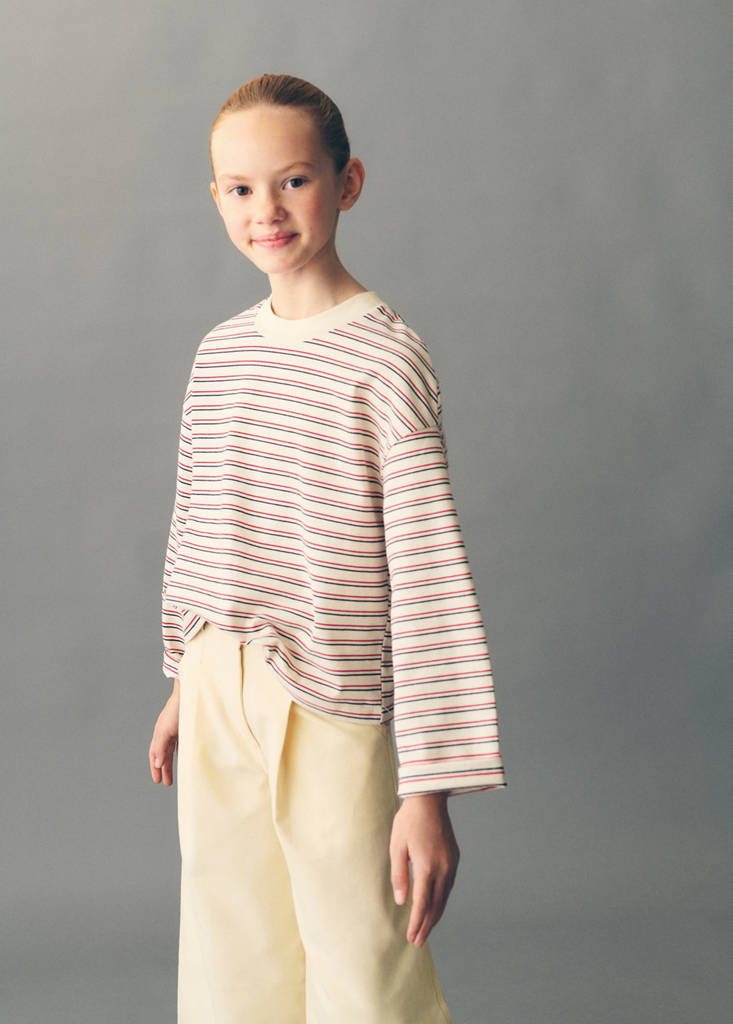 Fabric with cotton. Striped print. Straight design. Round neck. Long sleeves. Limited edition