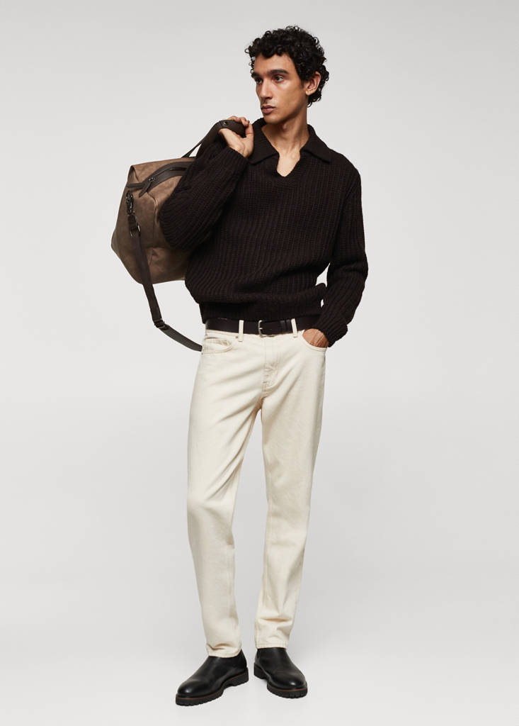 Made of recycled materials. Nappa faux-leather. Main compartment with zip closure. Side shoe compartment with zip closure. Two short hand grips. Removable and adjustable shoulder strap. Contrast details in pebbled effect leather. Metallic details. Large