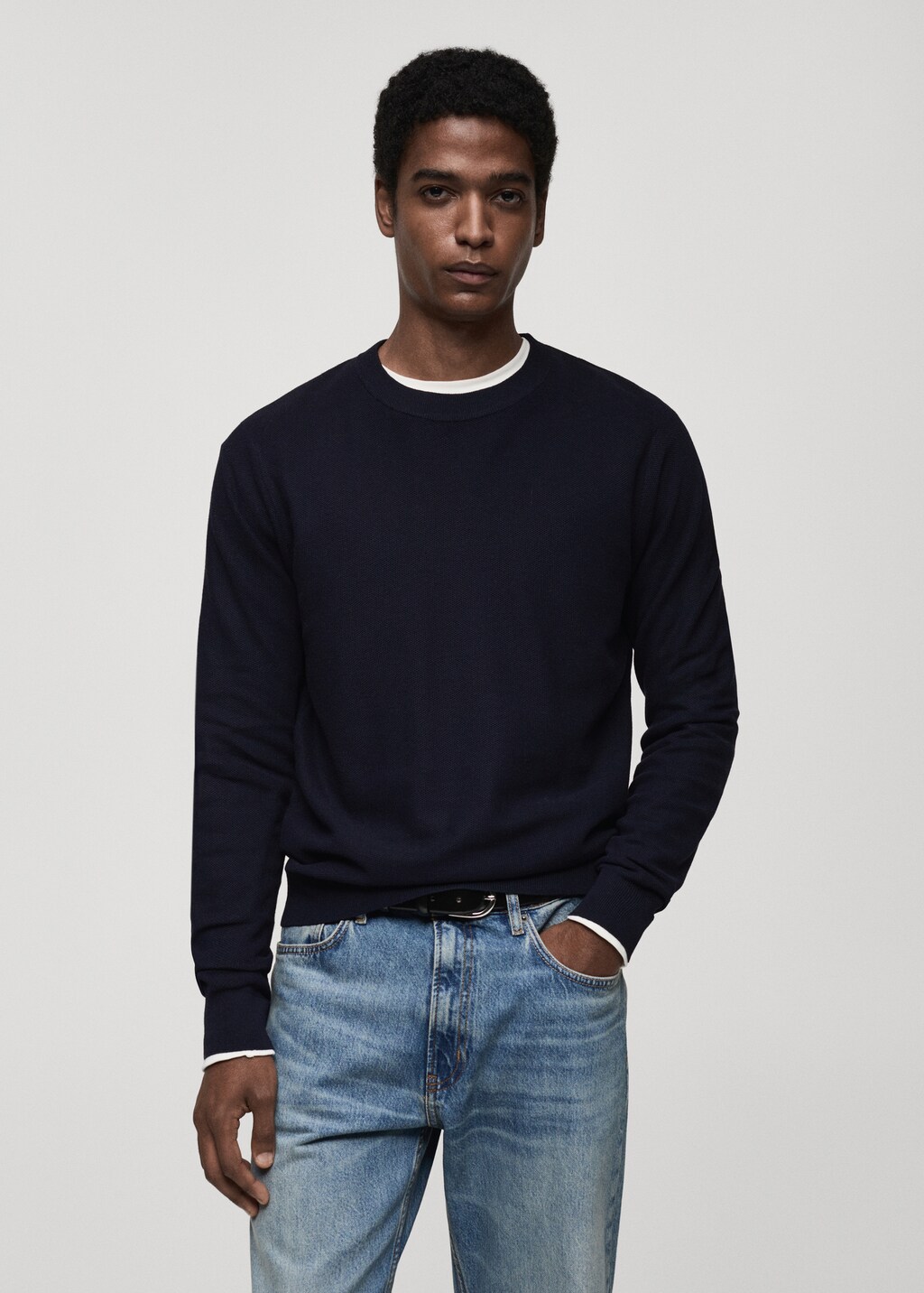 Cotton blend fabric. Fine-knit fabric. Microstructure design. Round neck. Untrimmed sleeves. The sand model is an online exclusive. Knit fabric. Long raglan sleeve. Elastic ribbed endings. Straight hem. Untrimmed hem. Regular fit.