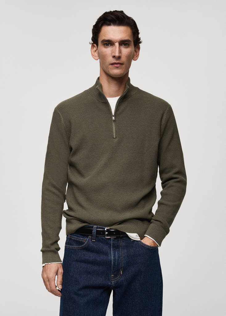 Ribbed sweater with zip neck