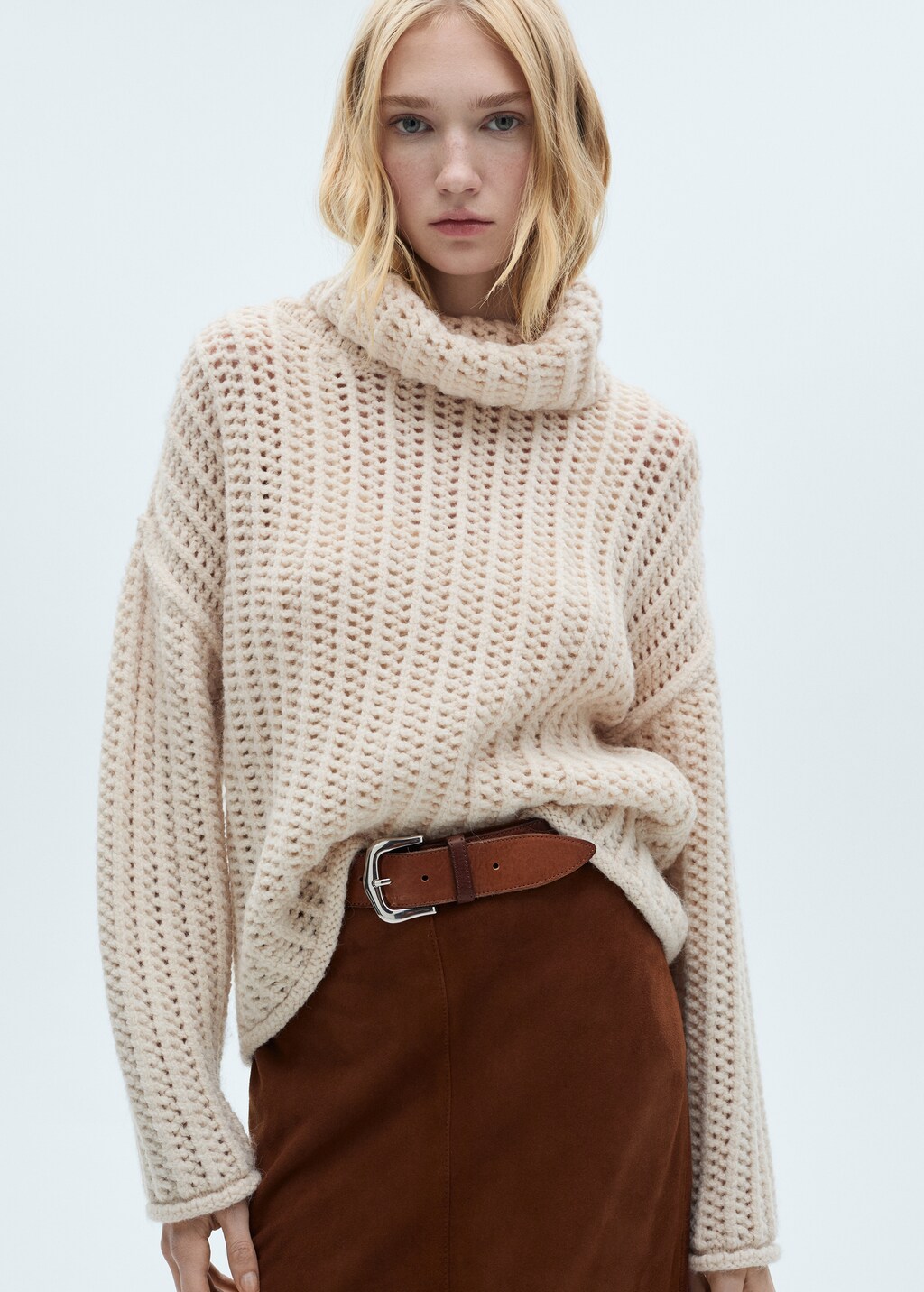 Openwork turtleneck sweater