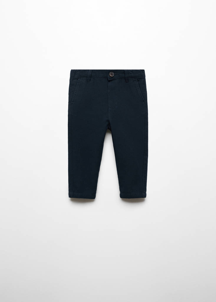 Kolekcija za zabave, ceremonije i pričesti. Tkanina mješavina pamuka i lana. Ravni dizajn. Dugi dizajn. Dva džepa s preklopom. Srednji struk. Traperice s vezicom za podešavanje. Dva bočna džepa s preklopom. Kopčanje na gumbe