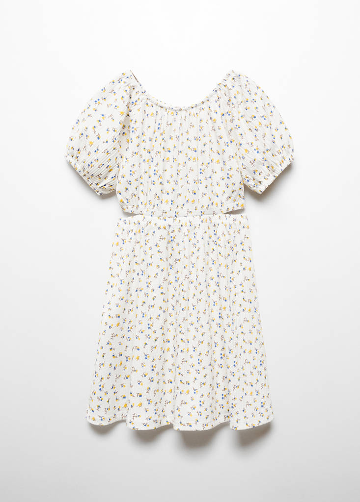 Floral dress with cut-outPrice historyInitial price struck through [8 995 Ft ]8 995 FtCurrent price [6 795 Ft ]6 795 Ft-24%Select a colourEcruSelect your size5-6 years (116cm)Not available. I want it!7-8 years (128cm)Not available. I want it!9-10 years (140cm)Not available. I want it!11-12 years (152cm)Not available. I want it!13-14 years (164cm)Not available. I want it!DimensionsNotify meParty, ceremony and communion collection. Flowers print. Straight design. Short design. Side slits. Round neck. Short sleeves. Puffed sleeves. Printed designDetails, composition and careStore availability