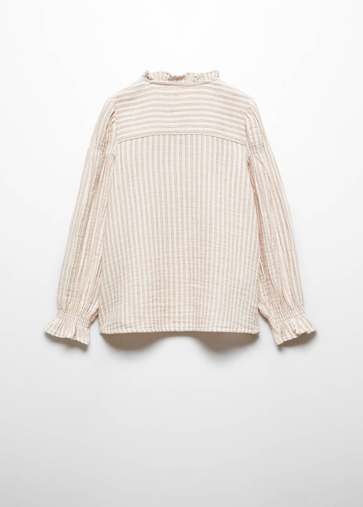 Straight design. Striped print. Ruched detail on the cuffs. Halter neck. Long sleeves. Button up. This garment is also available in Baby Girl´s collection