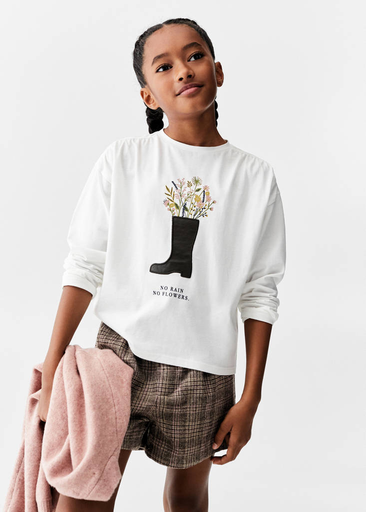 Straight design, image printed on the front, rounded neck, ruched detail on the cuffs, long sleeve.