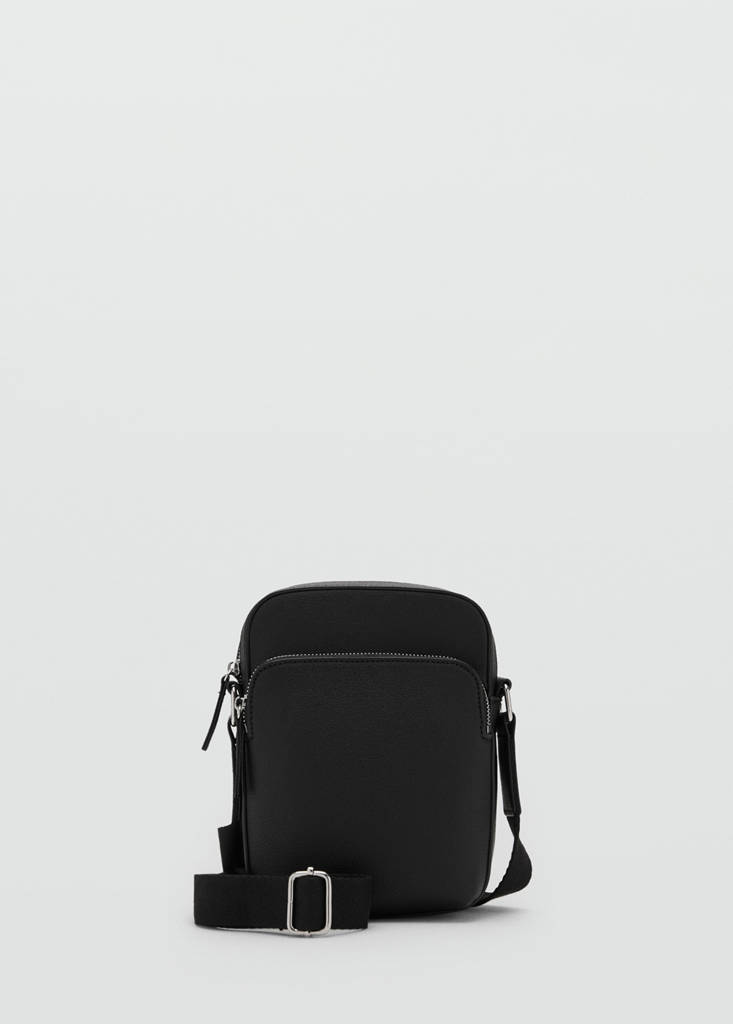 Pebbled leather effect. Long adjustable strap. Main compartment with zip closure. Side pocket with zip closure. Inner pockets