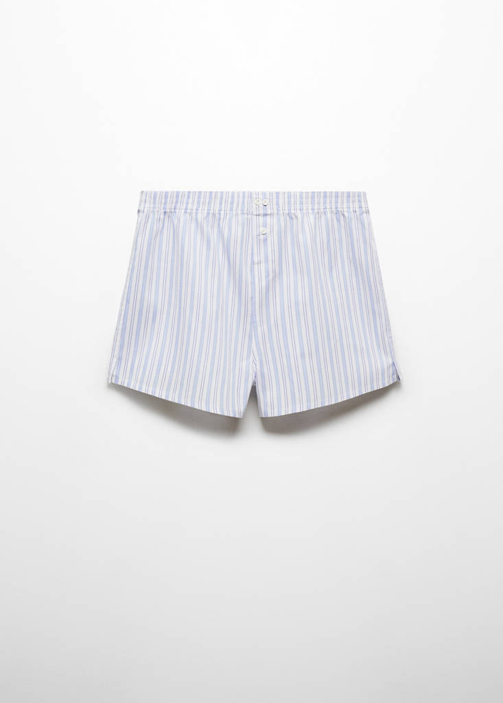 Decorative button detail. Vertical striped print. 100% cotton fabric