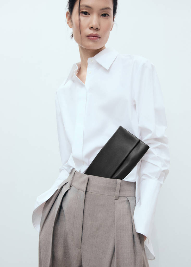 100% Leather. Rectangular design. Medium. Short chain strap. Shoulder strap. Flap closure with magnetic button. Inner lining