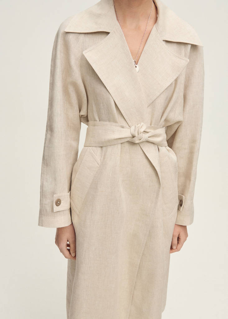Linen trench coat with pronounced lapels