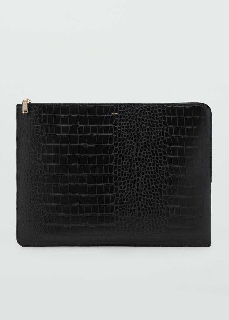 Large. Crocodile skin. Debossed logo. Interior pocket. Zip closure. Inner lining. Size 15 inch. Crocodile effect. Faux leather. Animal print. Zip fastening. Inner lining. Office looks. 36x2x27
