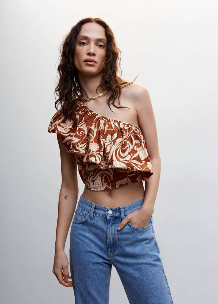 Asymmetric flounces top