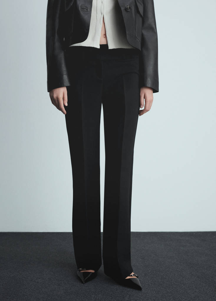Low-rise flared trousersPrice historyInitial price struck through [16 995 Ft ]16 995 FtSecond price struck through [11 195 Ft ]11 195 FtCurrent price [4 995 Ft ]4 995 Ft-71%Select a colourBlackThe model is wearing size 36 and is 177cm tall.Select your size32Not available. I want it!34Not available. I want it!36Not available. I want it!38Not available. I want it!40Not available. I want it!42Not available. I want it!MeasurementsNotify meSuit style. Flared design. Low waist. Belt loops. Two welt pockets at the back. Concealed button, hook and zip fasteningDetails, composition and careStore availability