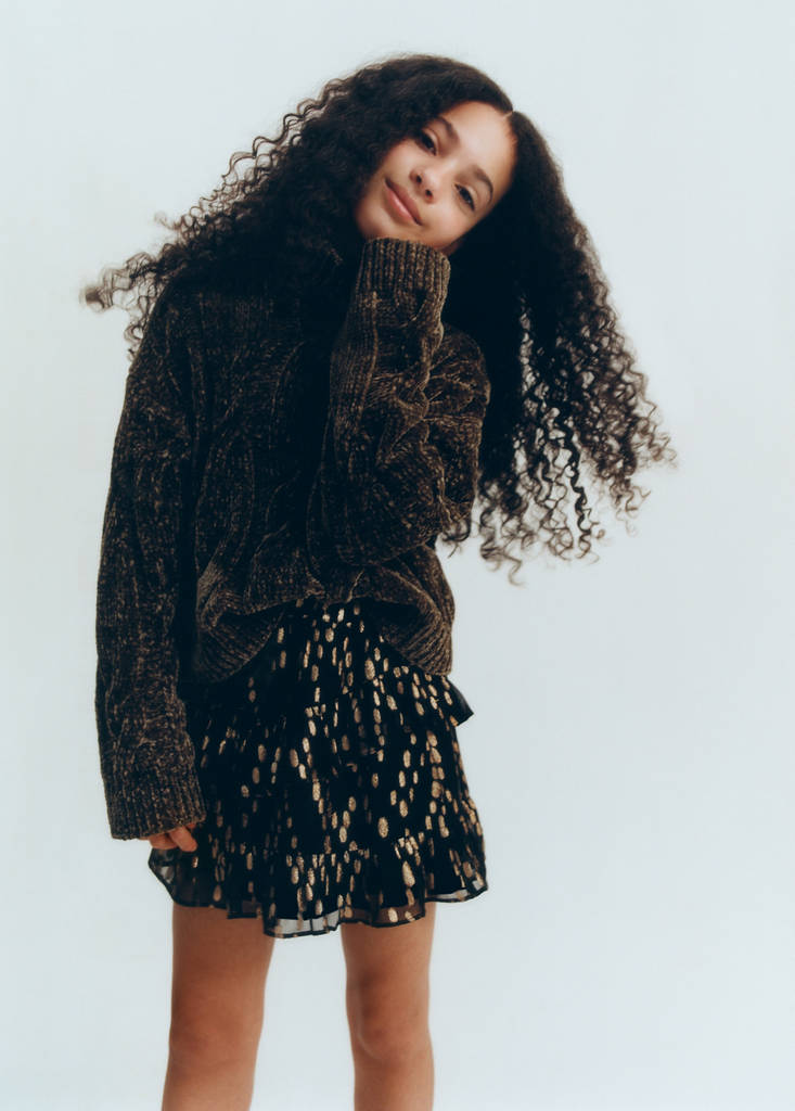 Vastag kötött anyag. Egyenes kialakítás. Fonott dizájn. Magas nyak. Hosszú ujj. Zárás nélküli. Karácsonyi kollekció