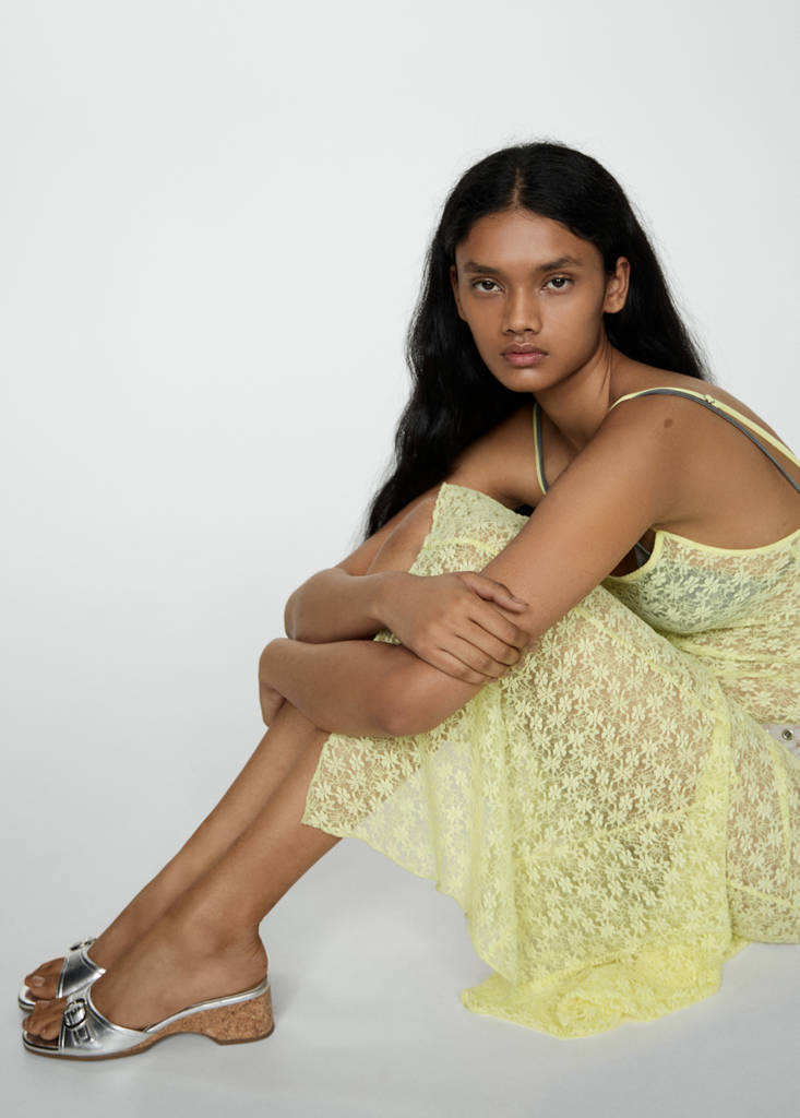 Egybetalp. Kivágott sarok dizájn. Fémszálas kivitel. Elülső nyílás. Kockás orr-rész. Dekoratív csat. A sarok magassága 5 cm