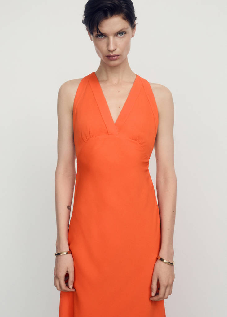 Lágy anyag. Hosszú dizájn. Egyenes kialakítás. V-kivágás. Keresztezett háttal. Ujjatlan. Széles pántok. Láthatatlan cipzár az oldalán. Gombos nyakzár. Belső bélés. Ünnepi, ceremónia és elsőáldozási kollekció. Ez a ruhadarab az esemény kollekciónk része, amelyet úgy terveztünk, hogy bármelyik bulin, esküvőn vagy ceremónián tökéletes vendéggé válhass.
