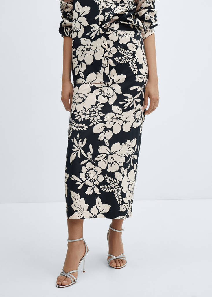 100% pamut. Hosszú dizájn. Egyenes kialakítás. Virágmintás. Hátul rejtett cipzárral. Hátsó hasíték az alján. Total look. Ünnepi, ceremónia és elsőáldozási kollekció