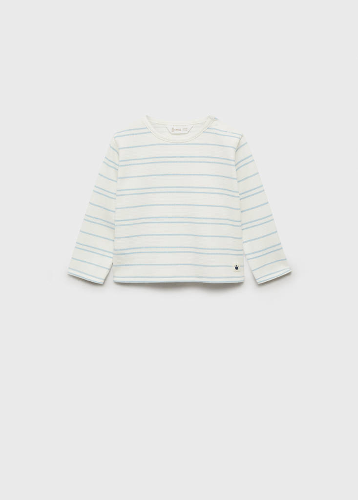 Pamut anyag. Csíkos szövet. Waffle hatású textúra. Egyenes kialakítás. Hosszú ujj. Kerek nyakkivágás. Gombos záródás a vállon