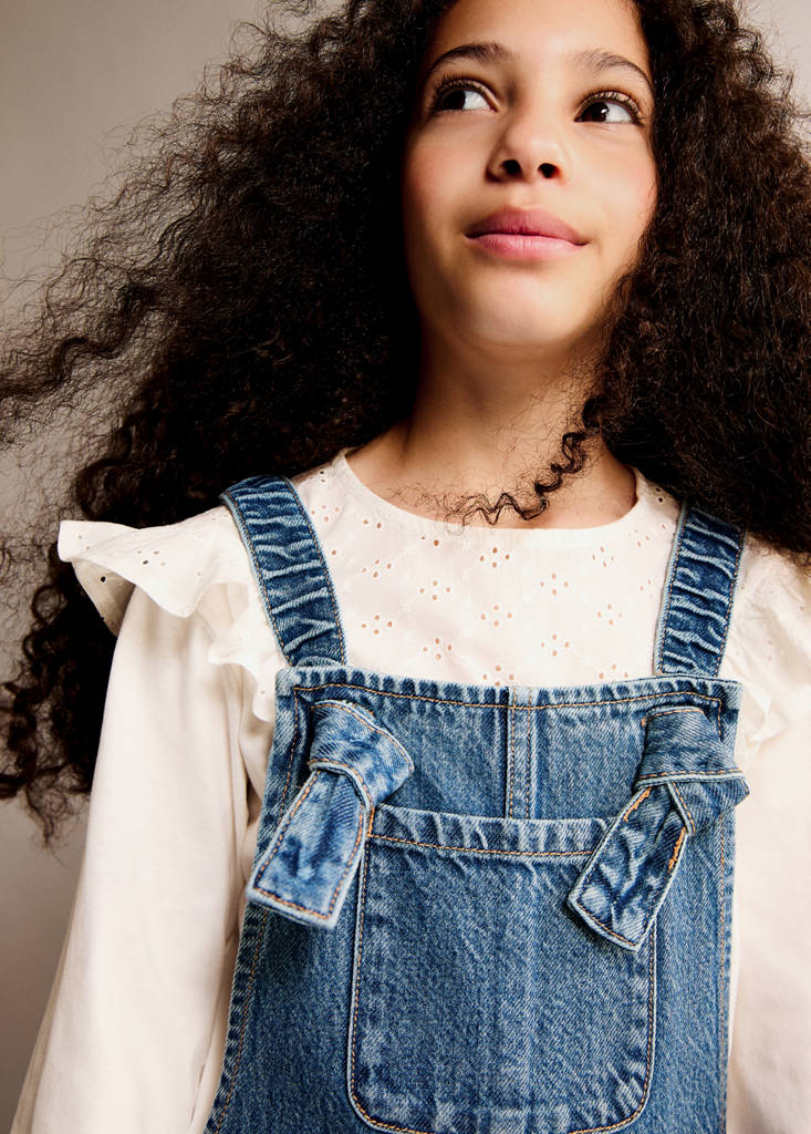 Design lungo. Scollo quadrato. Spalline. Tasca a toppa. Chiusura con bottoni laterali. Tasche a toppa sul lato posteriore. Tessuto di cotone stile denim cowboy. Design diritto