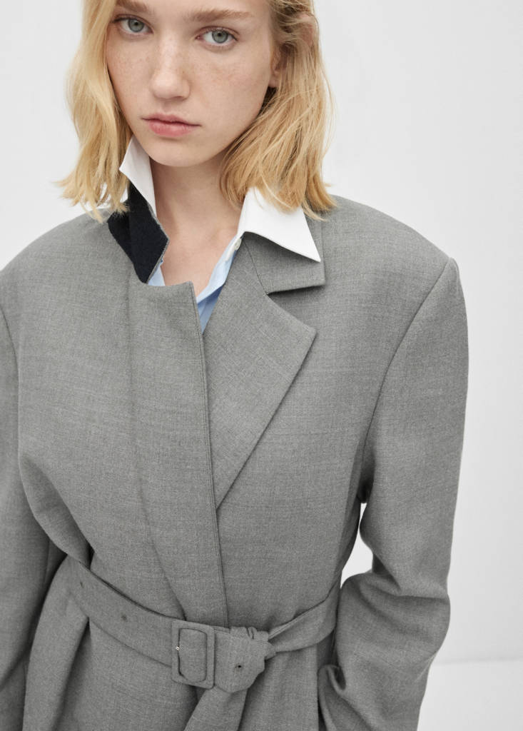 Design lungo. Manica lunga. Cintura con chiusura a fibbia. Fodera interna. Collezione Selezione. Tessuto misto lana. Collo a V con rever. Revers con intaglio. Design incrociato. Design diritto