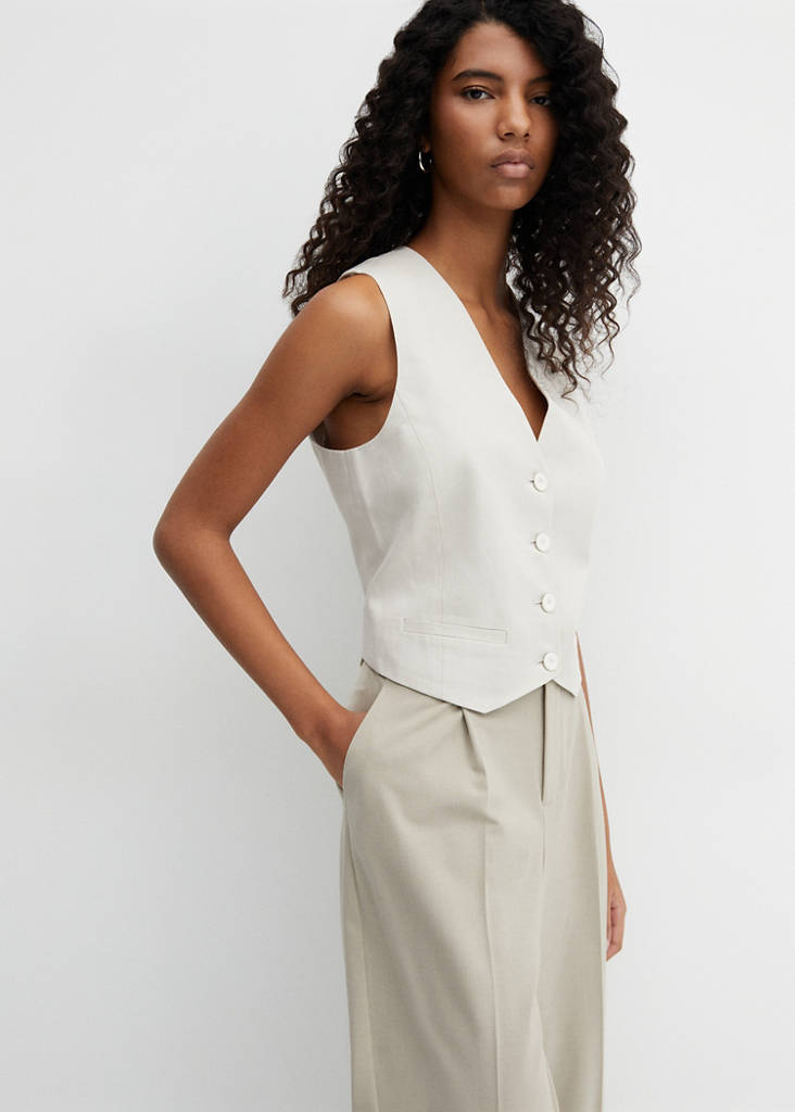 Tessuto misto cotone e lyocell. Design dritto. Stile completo. Collo a V. Senza maniche. Spalline larghe. Fodera interna. Total look. Chiusura frontale con bottoni