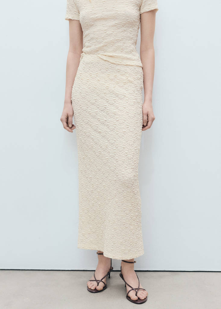 Tessuto di cotone. Tessuto con texture. Design avvitato. Design lungo. Vita elasticizzata. Senza chiusura. Total look