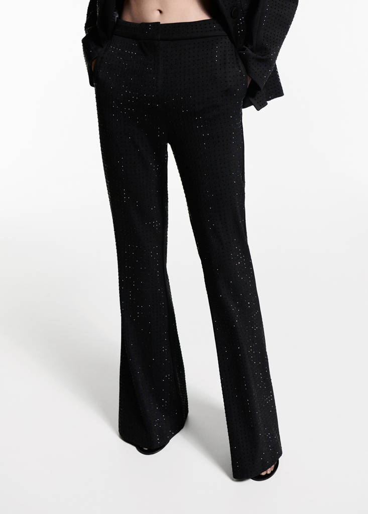 Design lungo. Dettaglio di strass. Chiusura nascosta con bottone, gancio e zip. Collezione per feste, cerimonie e comunioni. Modello scampanato. Vita media. Tasche laterali. Tasca con ribattitura e falda decorativa