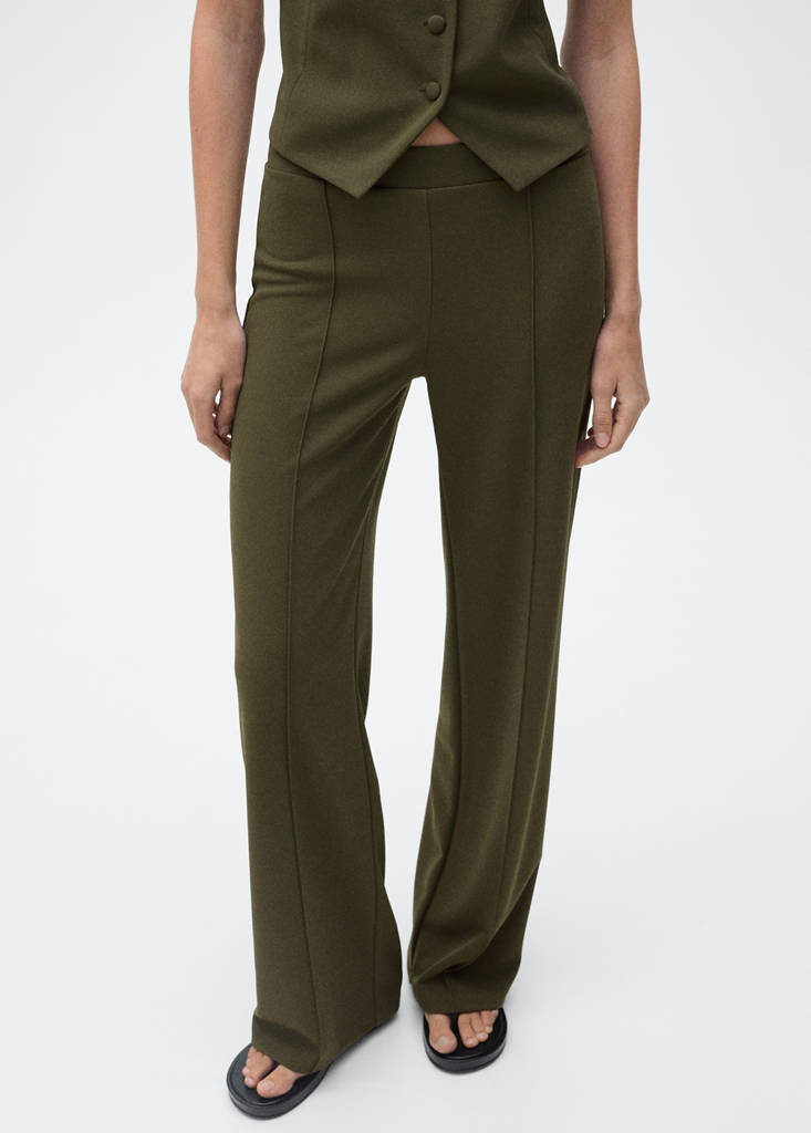 Tessuto a maglia. Design lungo. Design diritto. Vita media. Vita con elastico. Cuciture decorative. Senza chiusura. Total look. Look da ufficio