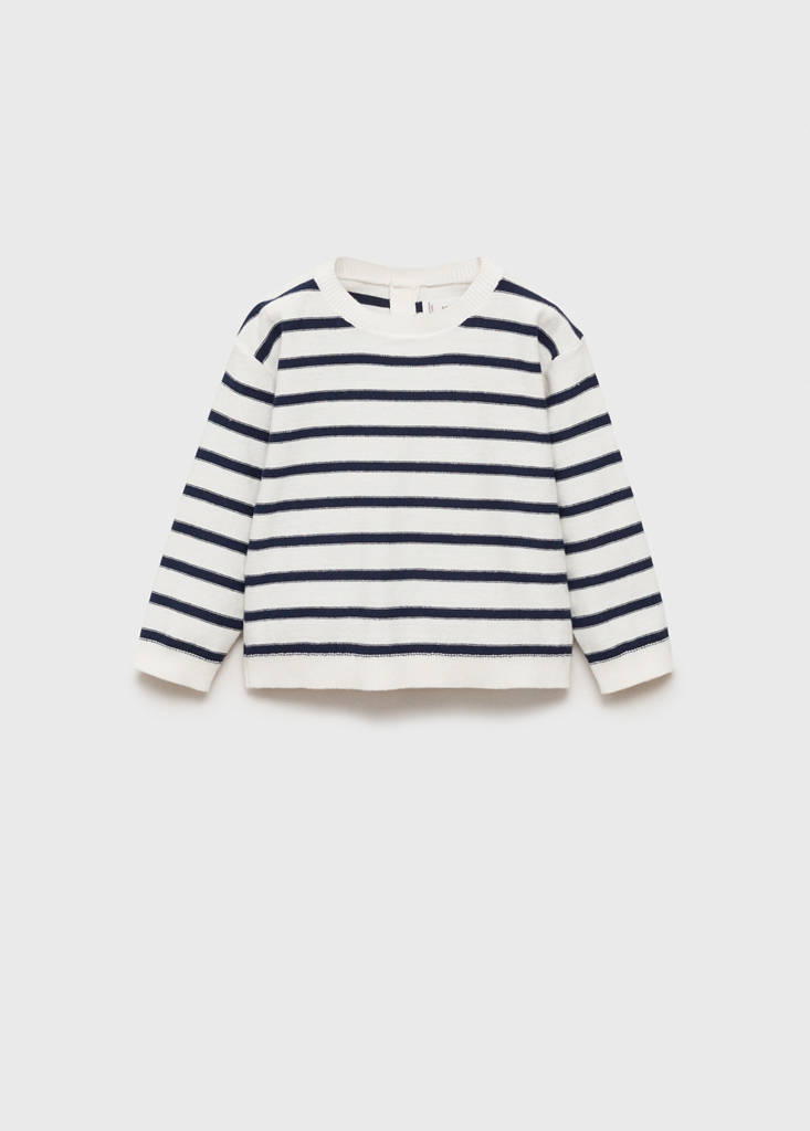 100 % Baumwolle. Feinstrick. Gerades Design. Streifendesign. Rundhalsausschnitt. Lange Ärmel. Gerippter Kragen, Bündchen und Saum. Knopfverschluss hinten