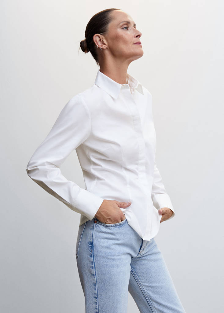 Baumwollpopelin. Gerades Design. Anzug-Optik. Hemdkragen. Lange Ärmel mit Knöpfen an den Enden. Bundfalten. Knopfverschluss vorne. In uni oder gemustert erhältlich. Streifenmuster. Plus erhältlich. Dieses Kleidungsstück gehört zu unserem Geschenke-Guide